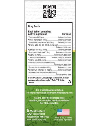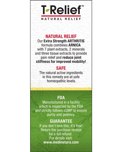Do not use if pregnant or breastfeeding. Keep out of reach of children. If symptoms persist or worsen, a health professional should be consulted. Do not use if known sensitivity to T-ReliefTM Arthritis or any of its ingredients exists.