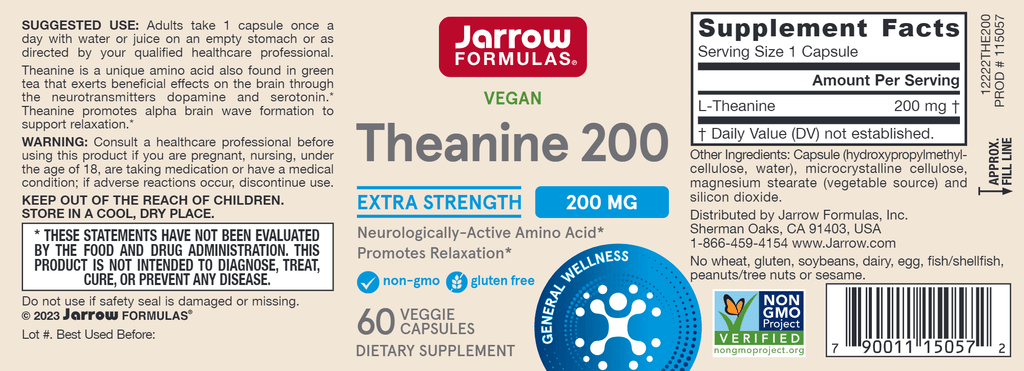 Theanine is a unique amino acid found almost exclusively in green tea that exerts beneficial effects on brain metabolism.* Theanine induces relaxation without causing drowsiness, as measured by increased generation of alpha-waves.* Theanine may improve sensations of pleasure by affecting dopamine and serotonin neurotransmitters in the brain.*