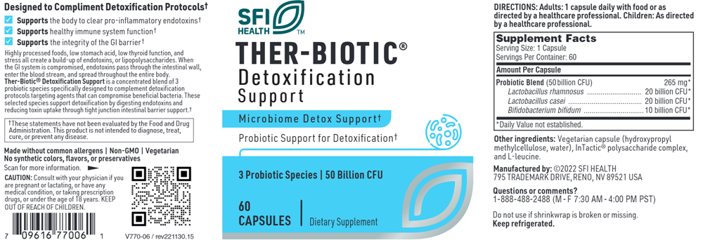 Ther-Biotic® Detoxification Support is a concentrated blend of 3 probiotic species in a cellulose base. It is specifically designed to complement detoxification protocols that can compromise beneficial bacteria in your gut by digesting and reducing toxins that might otherwise pass through your intestinal barrier.†