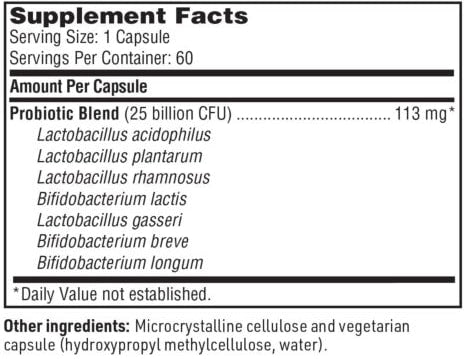 Probiotics may support healthy levels of hormones and proteins related to appetite and fat storage, as well as support healthy inflammation modulation, which is often associated with weight gain.† Ther-Biotic® Metabolic Formula is a blend of 7 select probiotic species in a cellulose base. Designed to increase intestinal diversity and support healthy metabolism and weight management, each capsule provides 25 billion CFU.†