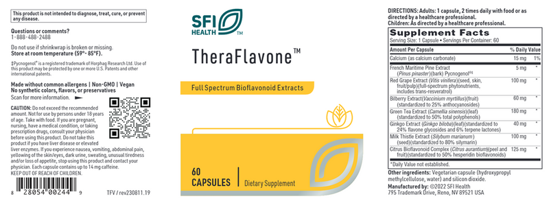 Only full-spectrum extracts, not isolated flavonoids, are included thus preserving the synergistic activity of the full complement of phytonutrient compounds with well-documented antioxidant and biochemical actions. TheraFlavone™ is a powerful formula providing support for immune function, circulatory health, liver detoxification mechanisms, and antioxidant pathways.†