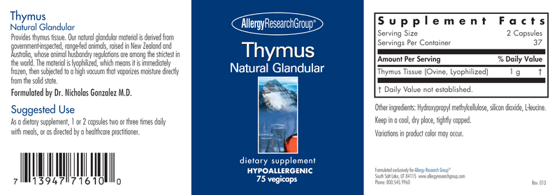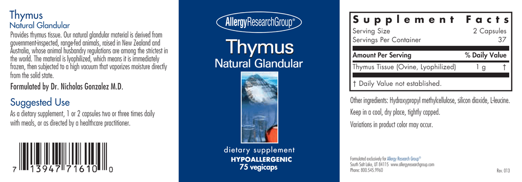 Thymus Natural Glandular provides carefully sourced, freeze-dried thymus tissue to support healthy thymus and immune function.* Derived from range-grazed, government-inspected animals in New Zealand and Australia, this traditional glandular preparation preserves key nutrients and bioactive compounds to support the thymus gland and vitality.*
