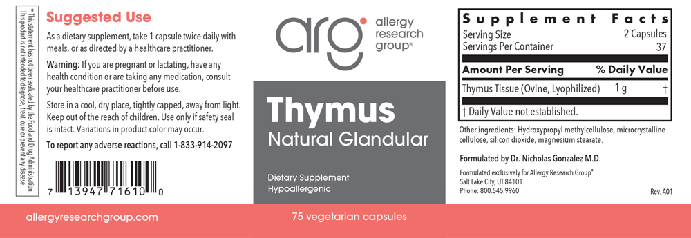 Thymus Natural Glandular provides carefully sourced, freeze-dried thymus tissue to support healthy thymus and immune function.* Derived from range-grazed, government-inspected animals in New Zealand and Australia, this traditional glandular preparation preserves key nutrients and bioactive compounds to support the thymus gland and vitality.*