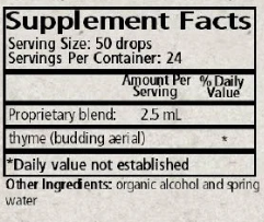 Ingredients: Organic flowering herb, 1:1.6 fresh + dry, in a base of organic alcohol and spring water.