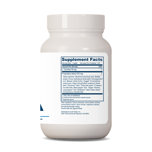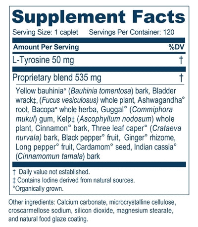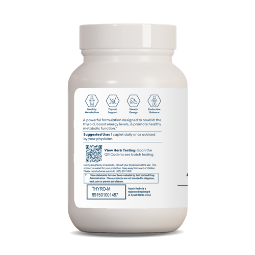 THYRO-M™ is newly formulated now featuring plant based iodine with bladderwrack and kelp! It contains herbal, mineral and amino acid (tyrosine) preparation for thyroid support. It contains Commiphora mukul, Bauhinia tomentosa,Withania somnifera, and Bacopa monnieri, and other herbs that work synergistically to balance and rejuvenate the thyroid. In addition, Thryo-M™ contains iodine and tyrosine, which are essentially food for the thyroid. The majority of the population is deficient in iodine. These ingredients create a well-balanced formula for thyroid imbalances.