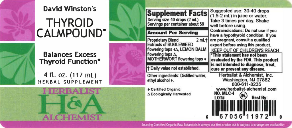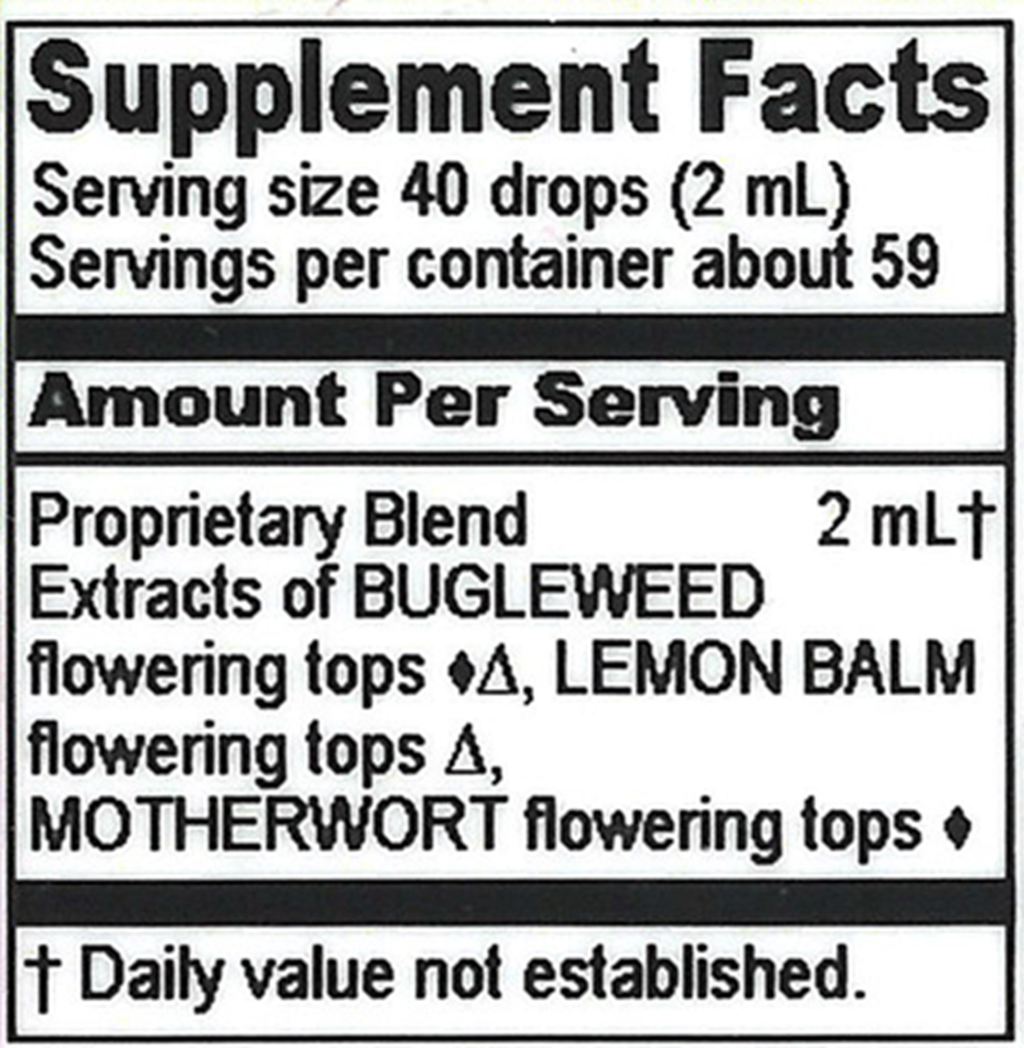 Bugleweed herb ((Lycopus virginicus, L. americanus, L. europaeus), Lemon Balm flowering tops (Melissa officinalis), Motherwort flowering tops (Leonurus cardiaca)
