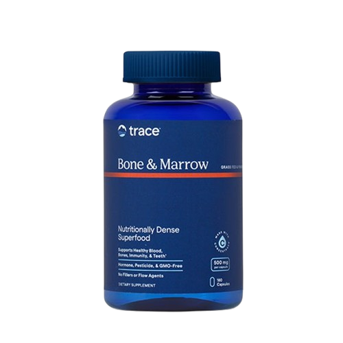 What is bone marrow? A spongy tissue found in the center of bones. Its stem cells produce red and white blood cells. These specialized cells move oxygen throughout your bloodstream and reduce the chance of blood clotting. Bone marrow contains Collagen and a special omega-9 fat that could reduce inflammation and oxidative stress. Small to moderate amounts of B vitamins.