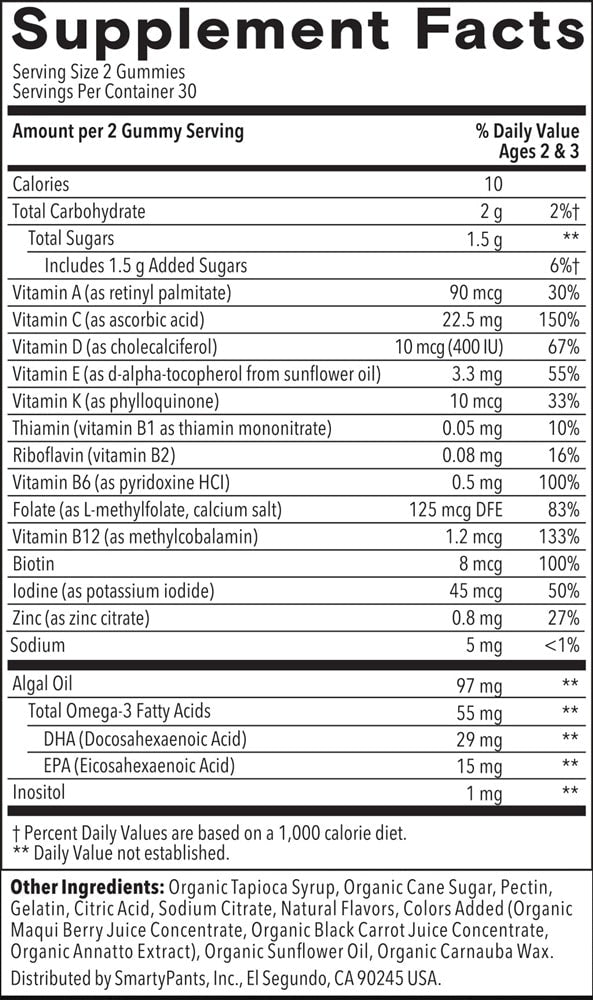 Directions: For children 2 and 3 years of age, take two (2) gummies daily under adult supervision. Chew each piece thoroughly. May be taken with or without food.