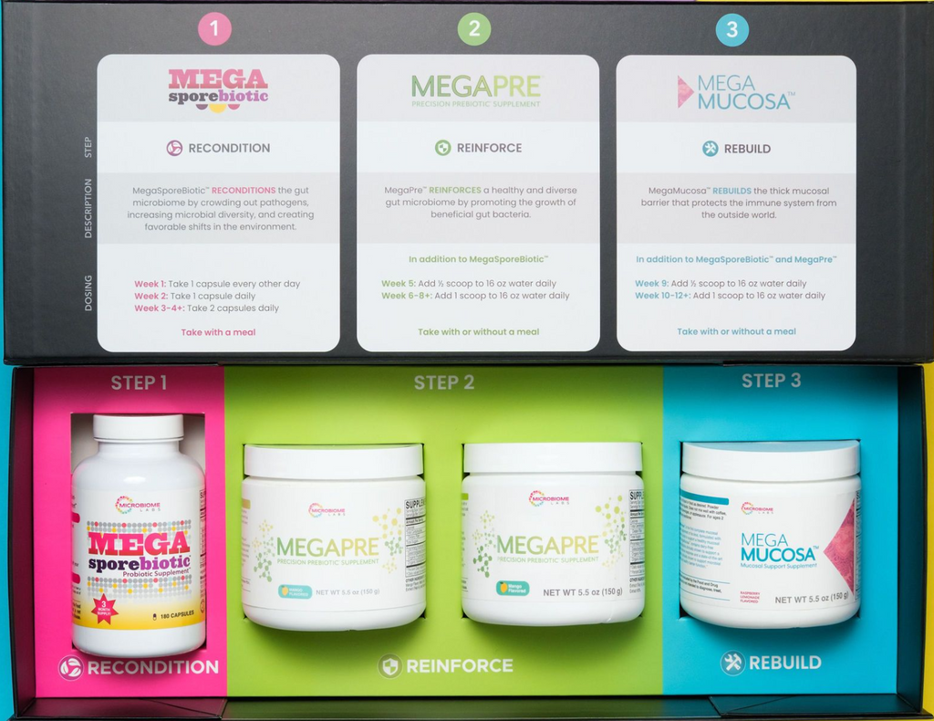 Purchase a bundle of Megasporebiotic, Megamucosa, & MegaPre Prebiotic as part of Microbiome Labs' Total Gut Restoration program.