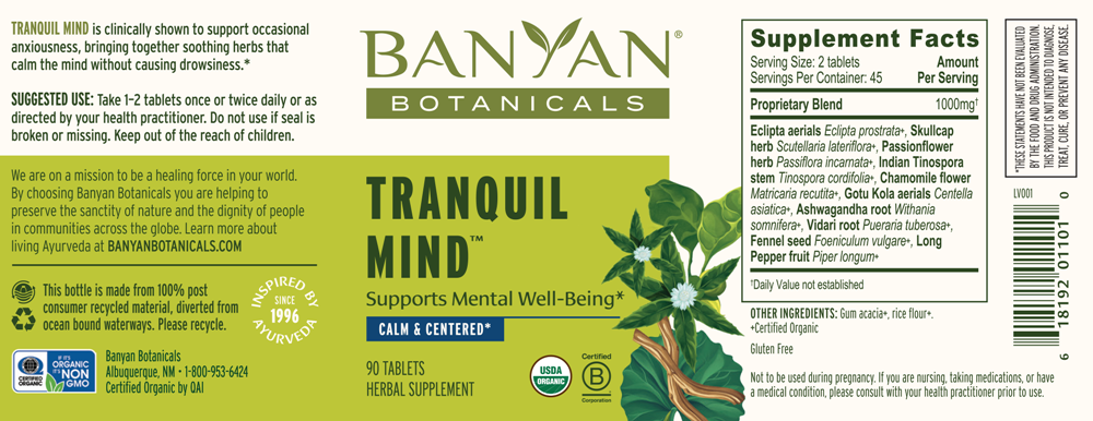Day-to-day stress from a hectic lifestyle may provoke vata in the mind and lead to mental agitation and nervousness. Tranquil Mind is carefully formulated to soothe and calm the nerves without creating dullness or lethargy. This synergistic blend of herbs balances mental activity, releases excess vata, and helps maintain a natural state of peace and well-being. It can be taken with or without food.*