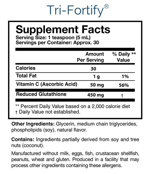 Tri-Fortify® is a clinically researched liposomal glutathione in a delicious oral delivery system, providing superior cellular absorption. Tri-Fortify® is backed by peer-reviewed, published clinical research. Furthermore, Tri-Fortify® overcomes the common shortcomings of other glutathione supplements.