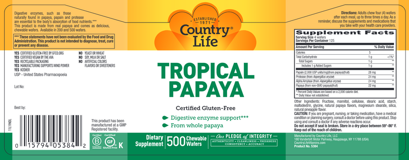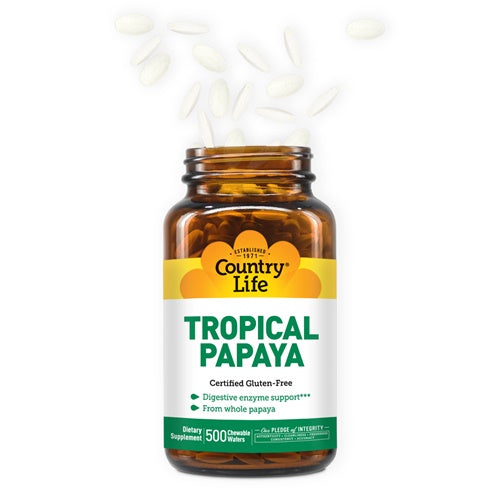 Digestive enzymes, such as those naturally found in papaya, papain and protease are essential to the body’s absorption of food nutrients.** This product is made from real papaya and comes as delicious, chewable wafers. Available in 200 and 500 wafers.