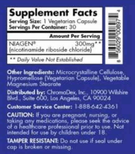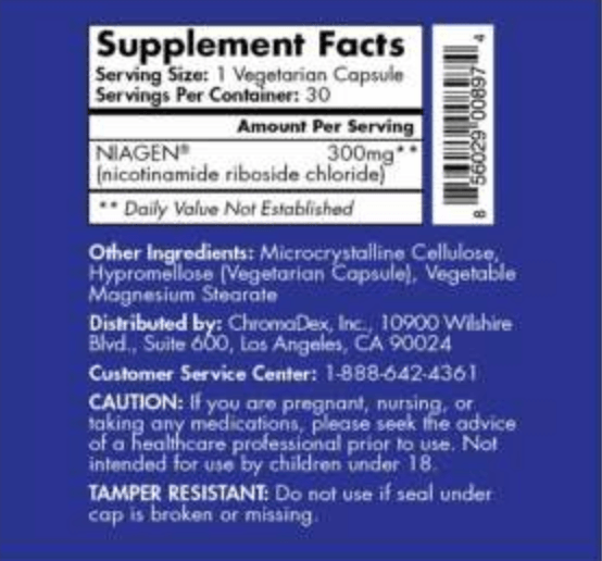 Niagen is the first and only patented and FDA safety reviewed form of nicotinamide riboside: