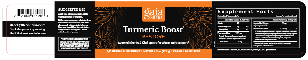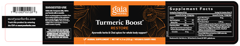 Turmeric Boost® Restore is made with Ayurvedic herbs and real Chai spices and is a delicious addition to smoothies, juice, or dairy or non-dairy milk. It provides everyday whole body support with Turmeric to help reduce occasional inflammation due to normal daily wear and tear.*