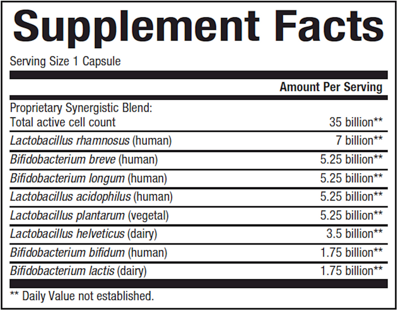 Imbalance in flora may be caused by stress, diet, travel, and gastrointestinal disturbances. Ultimate Probiotic, specifically formulated for seniors, provides a powerful concentration of 35 billion active cells of 8 gastric-resistant strains (at time of expiration) that work synergistically for maximum activity and efficacy.* Supporting a positive balance of microflora helps maintain a healthy immune system and digestive strength. A healthy intestinal flora helps to create a favorable environment for absorption of nutrients.*
