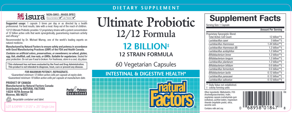 Did you know our gut (or microbiome) is home to 80% of our immune system, and much of that defense is due to the good bacteria that live in our digestive tract? Imbalances in these good bacteria caused by stress, diet, travel, gastrointestinal disturbances, and use of medication can affect many areas of our health. Ultimate Probiotic 12/12 Formula, a blend of 12 research-supported strains, helps keep our microbiome balanced, happy, and healthy.*