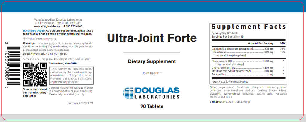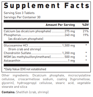 Ultra Joint Forte contains a combination of glucosamine, chondroitin, methylsulfonylmethane (MSM), and astaxanthin. Glucosamine HCl is a well-absorbed source of glucosamine, an important precursor for the synthesis and maintenance of connective tissues. Chondroitin sulfate also supports formation of connective tissues, primarily joint cartilage, and helps support existing cartilage. MSM, a derivative of DMSO, is a naturally occurring compound of biologically available sulfur. Astaxanthin is a natural carotenoid that can help modulate the body's normal regulatory response. Individual results may vary.
