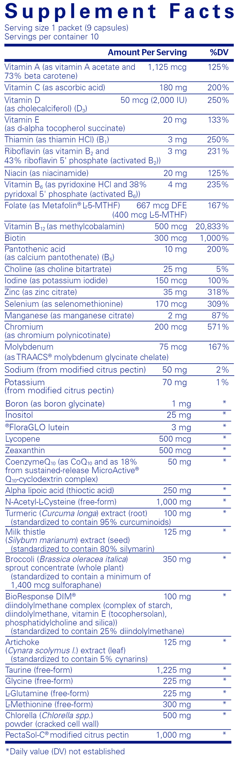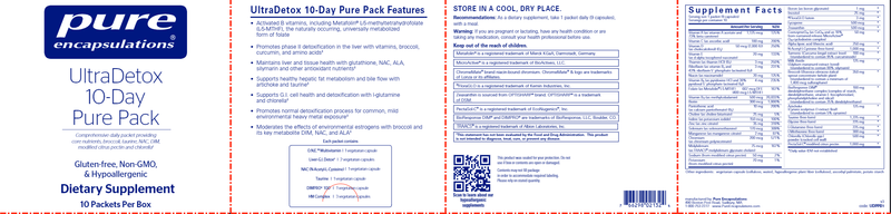 UltraDetox 10-Day Pure Pack is a comprehensive daily packet providing core nutrients, broccoli, taurine, NAC, DIM, modified citrus pectin and chlorella.