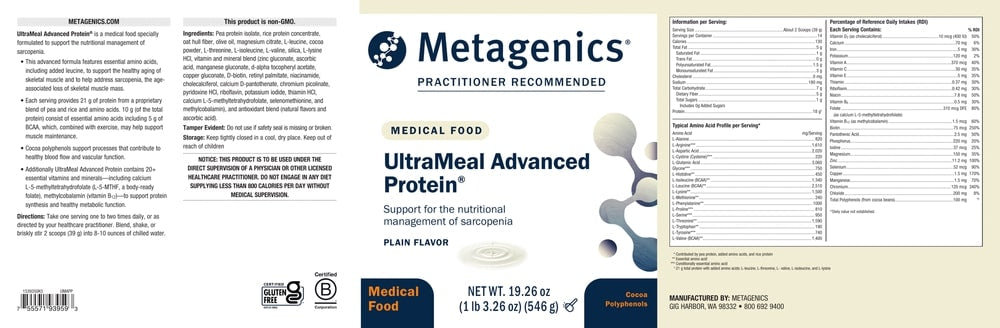 UltraMeal Advanced Protein® is a medical food formulated to support the nutritional management of sarcopenia – age-associated loss of muscle mass. Scientifically designed to address the natural muscle decline that begins to occur around age 30.