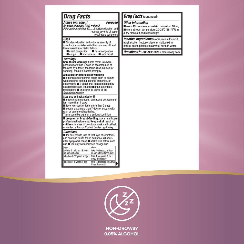 Shortens duration and reduces severity of cough, congestion, sore throat, and nasal and bronchial irritations.