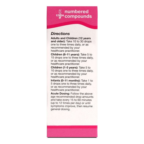 UNDA Numbered Compounds are unique remedies synergistically formulated with plant constituents that target and carry potentized metals to specific organs where enzymatic and metabolic functions are carried out on a cellular level helping to facilitate the drainage of toxins.