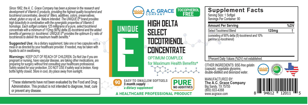 Since 1962, the A. C. Grace Company has been a pioneer in the research and development of Vitamin E products, providing the highest quality tocopherol and tocotrienol concentrates, devoid of fillers, additives, colors, preservatives, wheat, gluten or soy oil, as Nature intended.