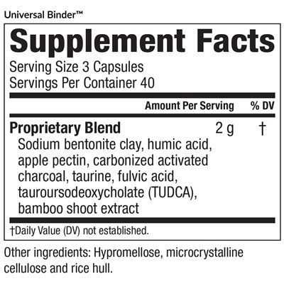 Enhance your body's ability to safely remove toxins with EquiLife's Universal Binder™. This remarkable formula leverages Bentonite Clay, Humic and Fulvic Acids, Apple Pectin, and Carbonized Activated Charcoal to bind to harmful toxins, increasing the safety and speed at which they are removed from the body. Plus, TUDCA & taurine help open up liver detox pathways for easy and safe elimination of toxins.