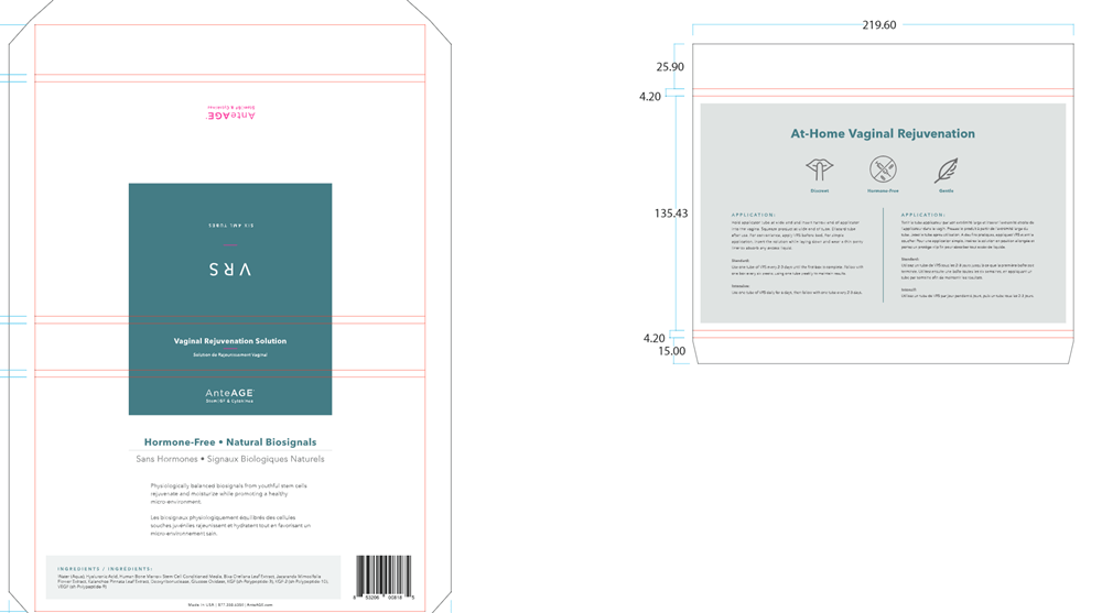 The AnteAGE® Vaginal Rejuvenation Solution is a regenerative vaginal moisturizer. Harnessing the natural power of bone marrow stem cells, AnteAGE® VRS delivers lost bio-signals to restore a youthful micro- environment. Our at home VRS safely restores the vaginal wall using growth factors and cytokines without any added hormones. Physiologically balanced bio-signals from the stem cell cytokines reduce inflammation while the hyaluronic acid increases moisture that is native to the body. Clinical studies show tremendous improvements in dryness, pain and vaginal epithelium thickness within 1-3 months of use.