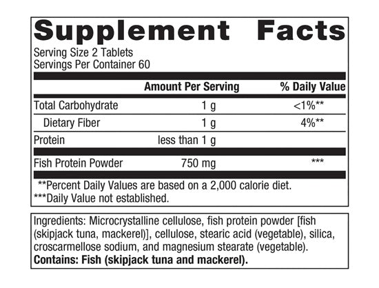 Vasotensin® provides peptides from bonito fish to support healthy blood pressure levels already in the normal range. Bonito peptides have been shown to impact the formation of angiotensin II through their interaction with angiotensin converting enzyme. This formula is designed to provide a supportive dose in just 2 tablets twice daily.*