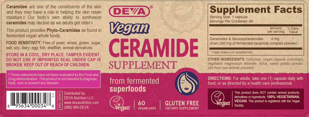 Deva's Vegan Ceramide product is perfect for anyone desiring extra nutritional support * Deva Vegan Ceramide is 100% vegan, vegetarian and is registered by the Vegan Society, the non-profit organization that actually invented the word "vegan".