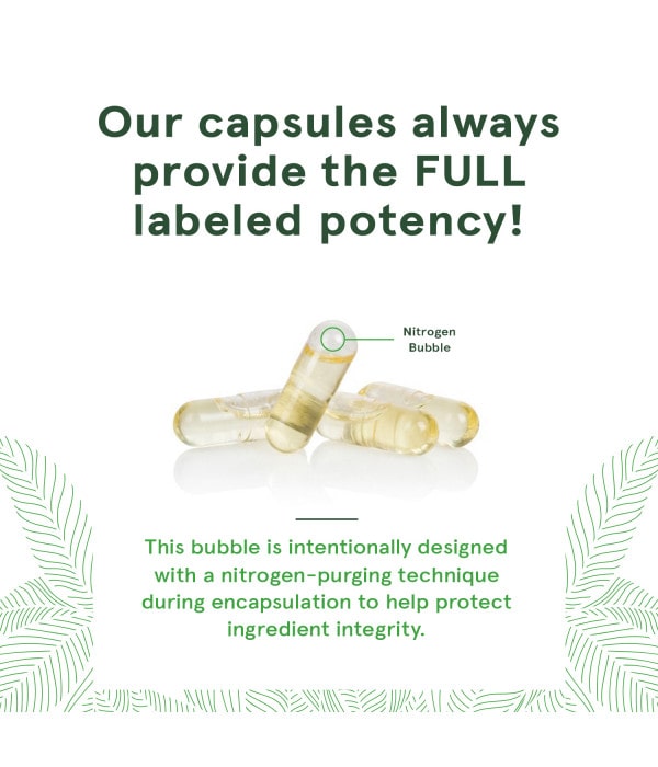 Free of yeast, wheat, gluten, soy, starch, sugar, salt, hexane, dairy, egg, fish, artificial color; animal products, byproducts or derivatives.