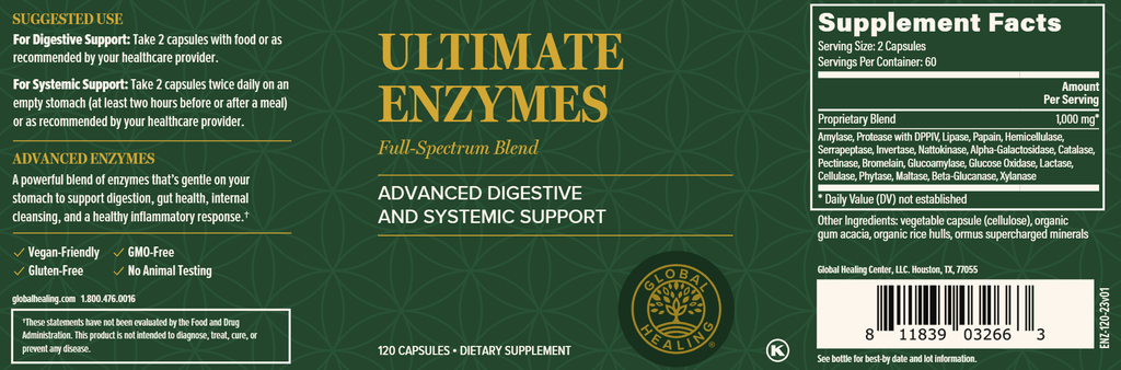 Ultimate Enzymes is an advanced, full-spectrum blend of powerful enzymes that support digestion, the immune system, and functional balance throughout the entire body. It contains a robust blend of systemic enzymes that support the many processes in the body, and a comprehensive collection of digestive enzymes that help body break down fats, carbohydrates, and proteins.