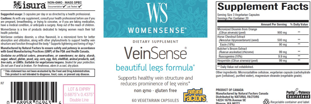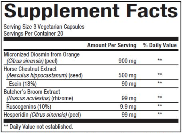 VeinSense contains diosmin, a citrus flavonoid, in a micronized form for better absorption and utilization, along with other phytonutrients to support healthy vein structure and function throughout the body.* Supports tightening and toning of legs.*