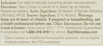 Active Ingredient: 5X dilution of Vervain (Verbena officinalis) HPUS.