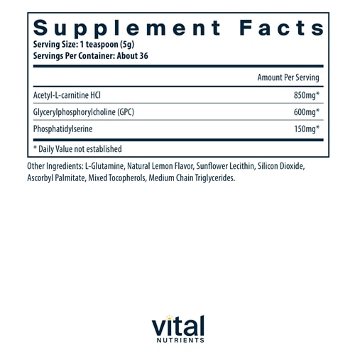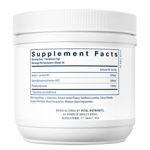 Vital Brain Powder® is a supplement for mental performance, brain vitality, and helping to restore brain function. The powerful nutrients support mental focus, memory, concentration, positive outlook, and brain wellness. Vital Brain® contains Glycero-PhosphoCholine (GPC), Acetyl L-Carnitine HCl (ALC), and Phosphatidyl Serine (PS). GPC is an effective brain nutrient that supports brain health in all age groups and assists in brain trauma recovery. ALC supports older adults by lessening fatigue in body and mind. PS consistently benefits memory, learning, concentration, word choice, mood, coping with stress, and other cognition parameters. Vital Brain® is now offered in a refreshing natural lemon flavor, made with all-natural crystallized lemon.