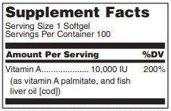 Vitamin A, provided by Douglas Laboratories, contains 10,000 I.U. per softgel of Vitamin A palmitate in fish liver oil.