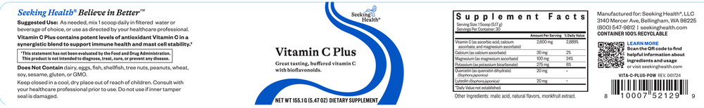 Vitamin C Plus powder contains a potent serving of buffered vitamin C. Plant bioflavonoids are included to support vitamin C utilization.†