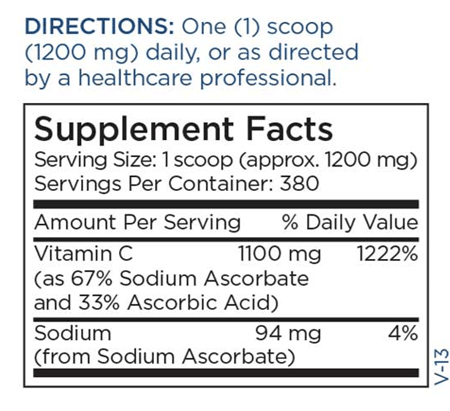 The functions of vitamin C in the human body are very diverse, and the need for additional vitamin C (ascorbic acid) rises during periods of emotional, psychological, or physiological stress as urinary excretion of the nutrient increases. Vitamin C is a potent water-soluble antioxidant and essential in the human diet as it cannot be synthesized within the body. Vitamin C is an electron donor, and this property is closely related to all of its known functions. Vitamin C in this formula comes from a combination of sodium ascorbate and ascorbic acid so that the pH of the supplement is less acidic than ascorbic acid alone (pH approximately 4.7 versus 2.4).