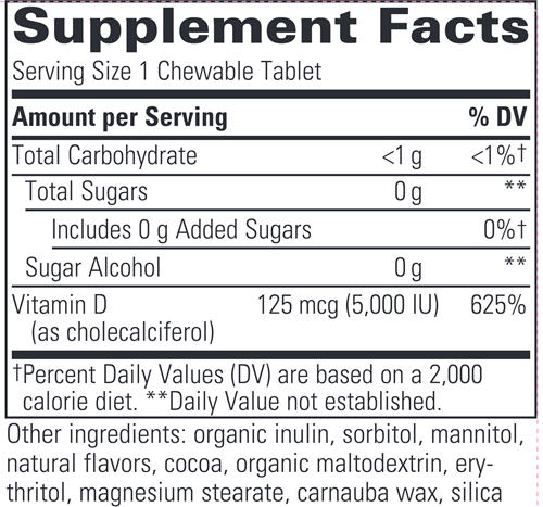 Also available in 2000 IU chocolate flavored chewable tablets.