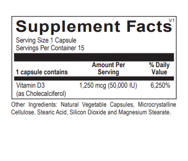 Vitamin D3 50,000 IU is ideal for those who have difficulty achieving and maintaining peak vitamin D levels. For those who require an immediate boost in their vitamin D status, the vitamin D3 50,000 IU formulation is a convenient, effective way to get the substantial support they need.