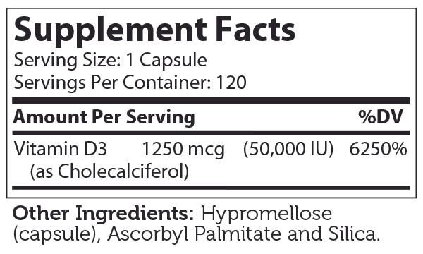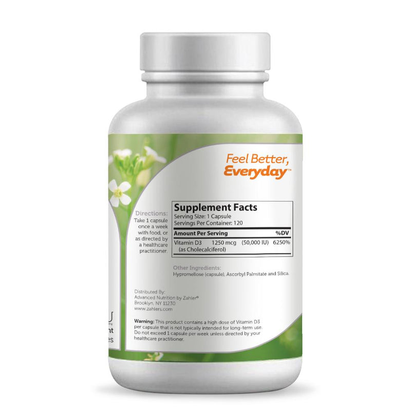 Zahler's Vitamin D3 50,000 IU is a once-weekly Vitamin D supplement for individuals with Vitamin D deficiency.