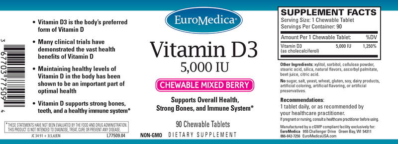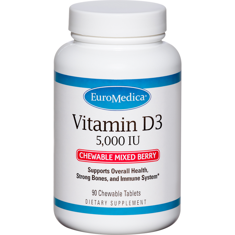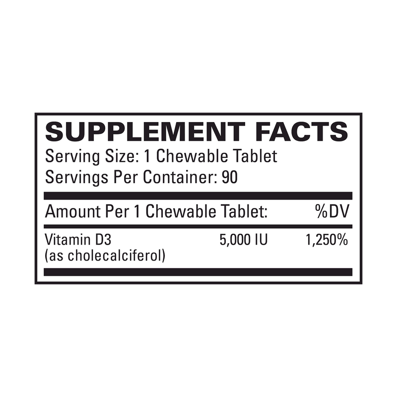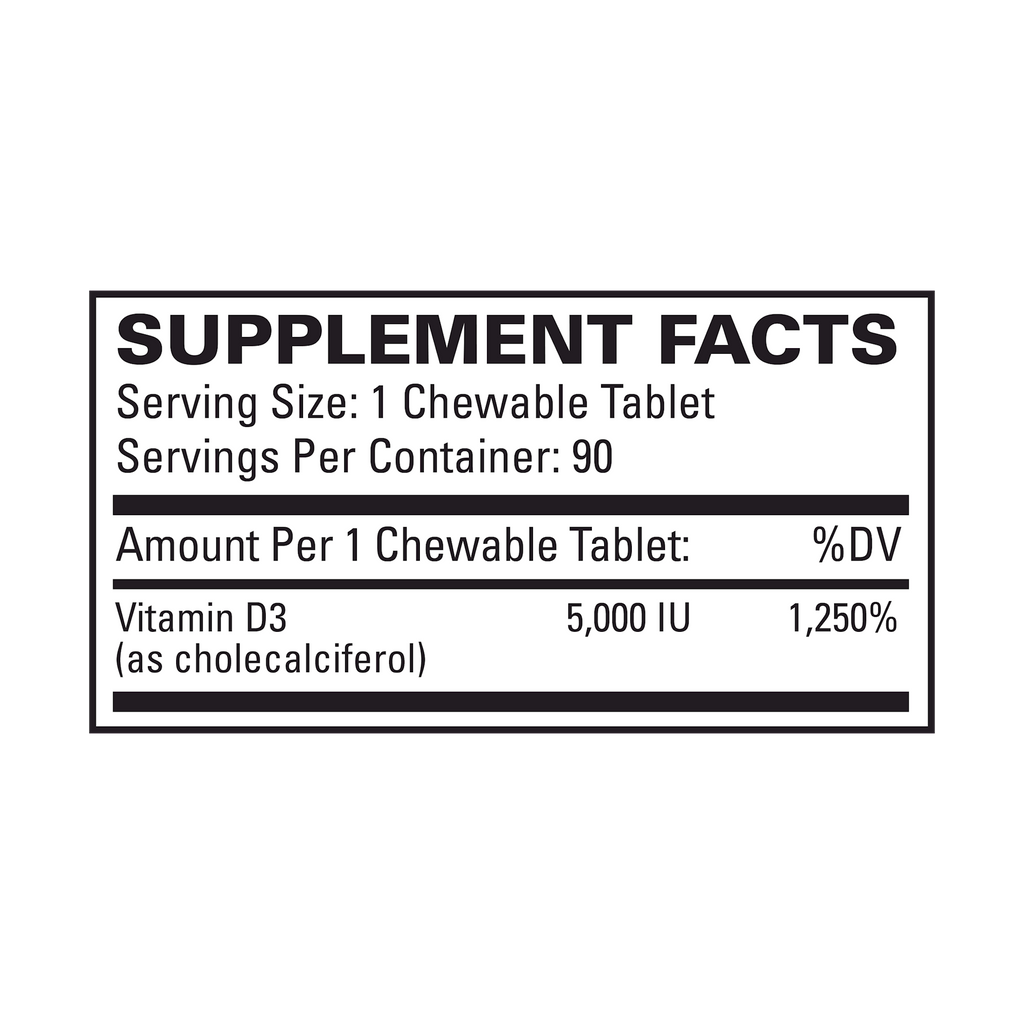 Vitamin D3 in a 5,000 IU chewable tablet to support overall health, strong bones, and immune system function.*