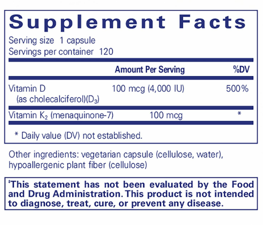 Vitamin K may be contraindicated with Coumadin (Warfarin). If you are pregnant or lactating, have any health condition or are taking any medication, particularly blood-thinning medication, consult your health professional before use. It is recommended that individuals taking more than 50 mcg (2,000 IU) vitamin D per day have their blood levels monitored.