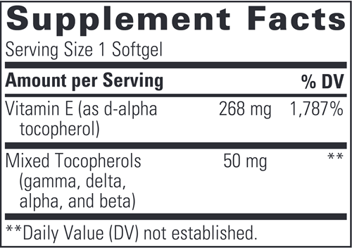 The vitamin E family is made up of different compounds called tocopherols including alpha, gamma, beta, and delta. These components work together and must all be present to be optimally utilized by the body. Our Vitamin E formula was developed to provide the full range of tocopherols necessary to support cardiovascular health.*