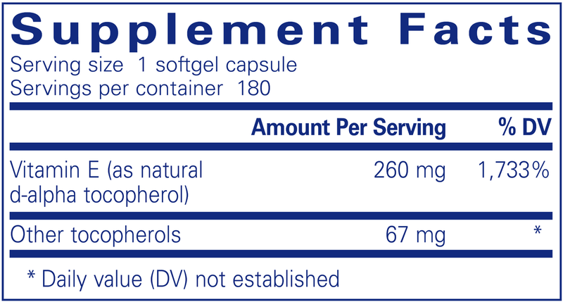 Vitamin E with mixed tocopherols is designed to promote antioxidant protection and cardiovascular health. Vitamin E with mixed tocopherols supports cellular respiration of muscles, especially cardiac and skeletal muscles.