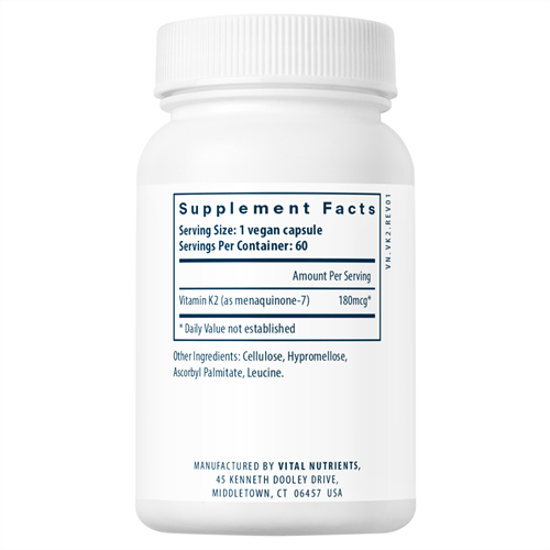 Compared to other forms of Vitamin K, Vitamin K2-7 has a longer half-life, resulting in more stable levels in the body. For best absorption, take with a mixed meal or some healthy dietary fat.