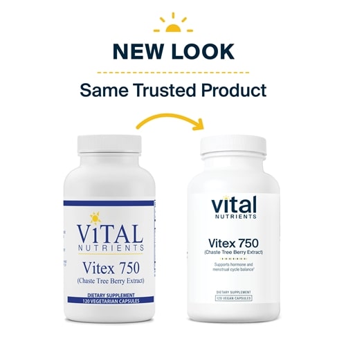 Vitex 750 contains high dose Vitex Extract fortified with Vitex Essential Oil, making it a powerful clinical tool to support women during times of hormonal change. Vitex helps maintain healthy prolactin and hormonal balance during the monthly menstrual cycle. It supports breast comfort and promotes a normal healthy attitude and mood during the menstrual cycle. Additionally, Vitex helps maintain normal ovarian function.