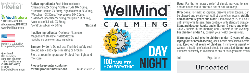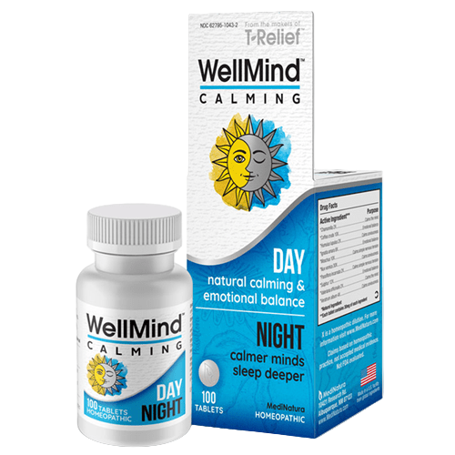 Carefully crafted to contain ten natural calming ingredients including chamomilla, passiflora, and valariana … all in homeopathic micro-doses. Gently calms you and supports your emotional balance without the side-effects of man-made calming drugs. Taking 2 tablets in the morning will clear energy-sapping anxiousness without making you drowsy. Unlike synthetic sleeping pills, taking 2 tablets of WellMind Calming at night won’t knock you out, but will help quiet your anxieties so you sleep more deeply—without morning grogginess.