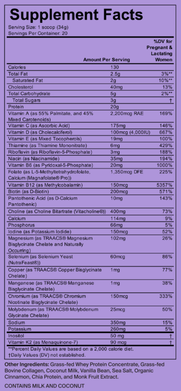 Prenatal + Postnatal Support: Provides crucial nutrients for before, during, and after pregnancy.