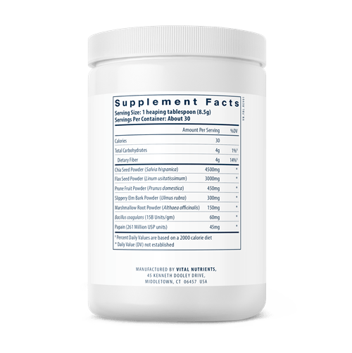 Whole Fiber Fusion is a comprehensive blend of mucilaginous botanicals that naturally provide dietary fiber. By using whole plant powders, Whole Fiber Fusion is easy on the digestive system, relieves occasional constipation, and helps maintain intestinal flora. Chia Seeds and Flax Seeds are nutritional powerhouses that contain lignans and alpha-linolenic acid, an omega-3 fatty acid. Lactobacillus Sporogenes, a probiotic, and Papain, a digestive enzyme derived from papaya, are included in Whole Fiber Fusion to promote healthy digestion.